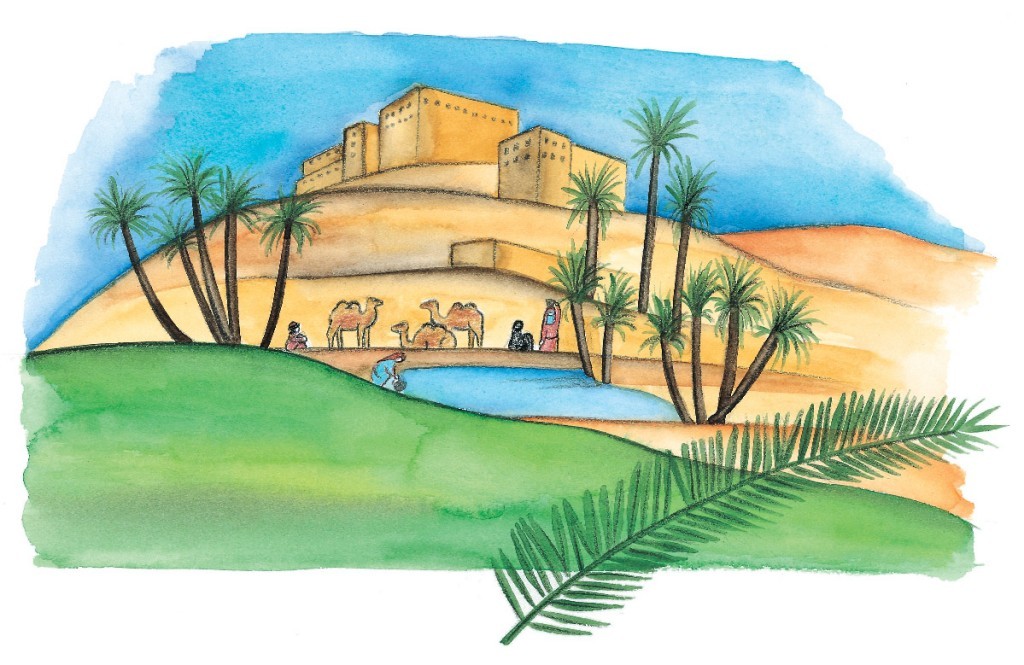 ]durch Flüsse (Strom- oder Flussoase), Quellen (z. B. artesische Brunnen; Quelloase) oder Grundwasservorkommen (Grundwasseroase) mit Wasser versorgte, häufig besiedelte Stelle in Wüsten oder Wüstensteppen. Oasen haben (reicheren) Pflanzenwuchs und werden meist durch Anbau von Obst und Feldfrüchten genutzt.