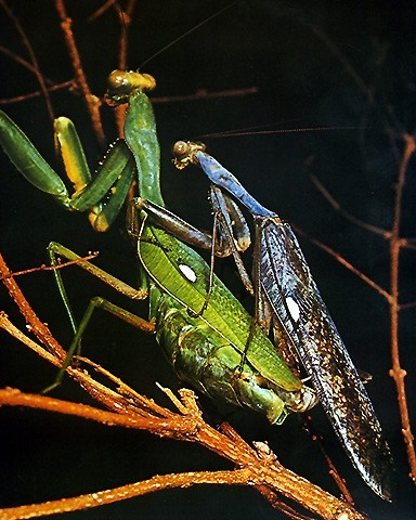Für das Männchen wird die Paarung dann gefährlich, wenn es in die Fangarme des Weibchens gerät. Es wird dann sogar noch während der Kopulation vom Weibchen gefressen.