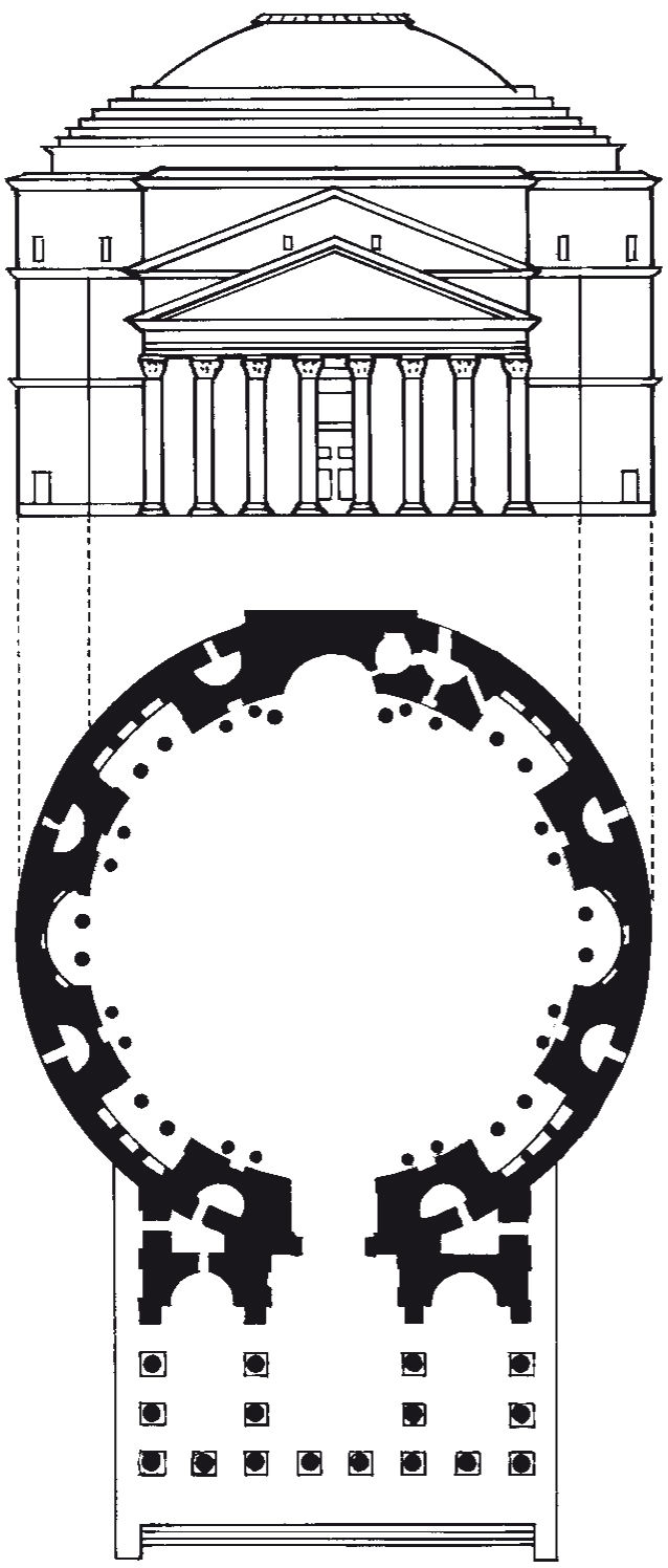 Innenansicht des römischen Pantheons. Der Tempel mit dem größter Zentralkuppelraum der Antike gehört zu den herausragendsten Bauwerken seiner Zeit.