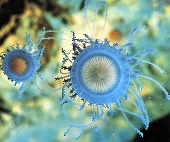 In Atlantik und Mittelmeer werden die von der Unterlage gelösten Hydrozoenstöcke oft in riesigen Schwärmen dahingetrieben. Der große Primärpolyp, dessen Fuß stark aufgetrieben und von Luftkanälen durchzogen ist, ist umgeben von Geschlechtspolypen.