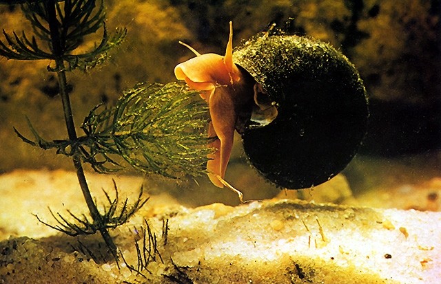 Im Gegensatz zu den Landlungenschnecken, deren Augen gestielt sind, besitzen Wasserlungenschnecken (Basommatophora) Augen, die am Grund des Tentakelpaares sitzen. Bei dieser Posthornschnecke (Planorbarius corneus) ist ein Auge als schwarzer Fleck zu sehen.