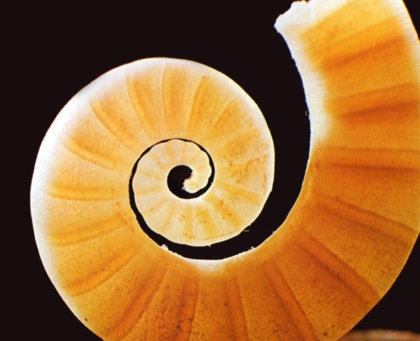 Nur wenige Zentimeter groß ist die durchsichtige, zerbrechliche Schale des Posthörnchens (Spirula). Es besitzt als einziger Zweikiemer ein spiralig aufgewundenes, gekammertes Gehäuse, das aber im Inneren des Körpers verborgen ist.