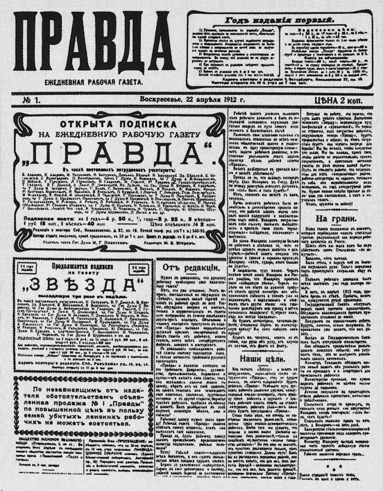 Titelseite der Erstausgabe der Prawda aus dem Jahr