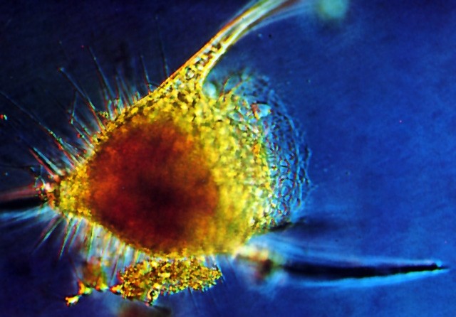 Die winzigen Radiolarien sind unter dem Mikroskop bei den erforderlichen starken Vergrößerungen nur jeweils in einer Bildebene scharf abzubilden, so dass ihre Struktur nie gleichzeitig ganz erfasst wird. Die langen Skelettfortsätze unterstützen das Schweben.