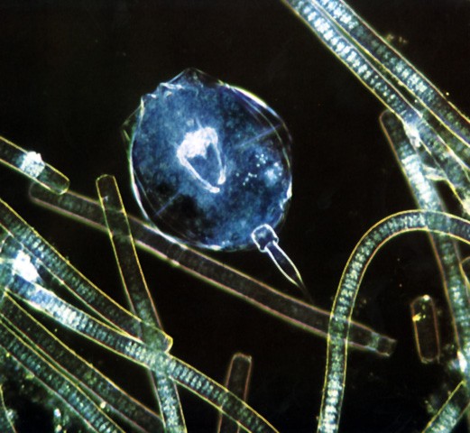 Rädertiere können sich mit Hilfe ihres mit Klebdrüsen versehenen »Fußes« am Untergrund festheften.