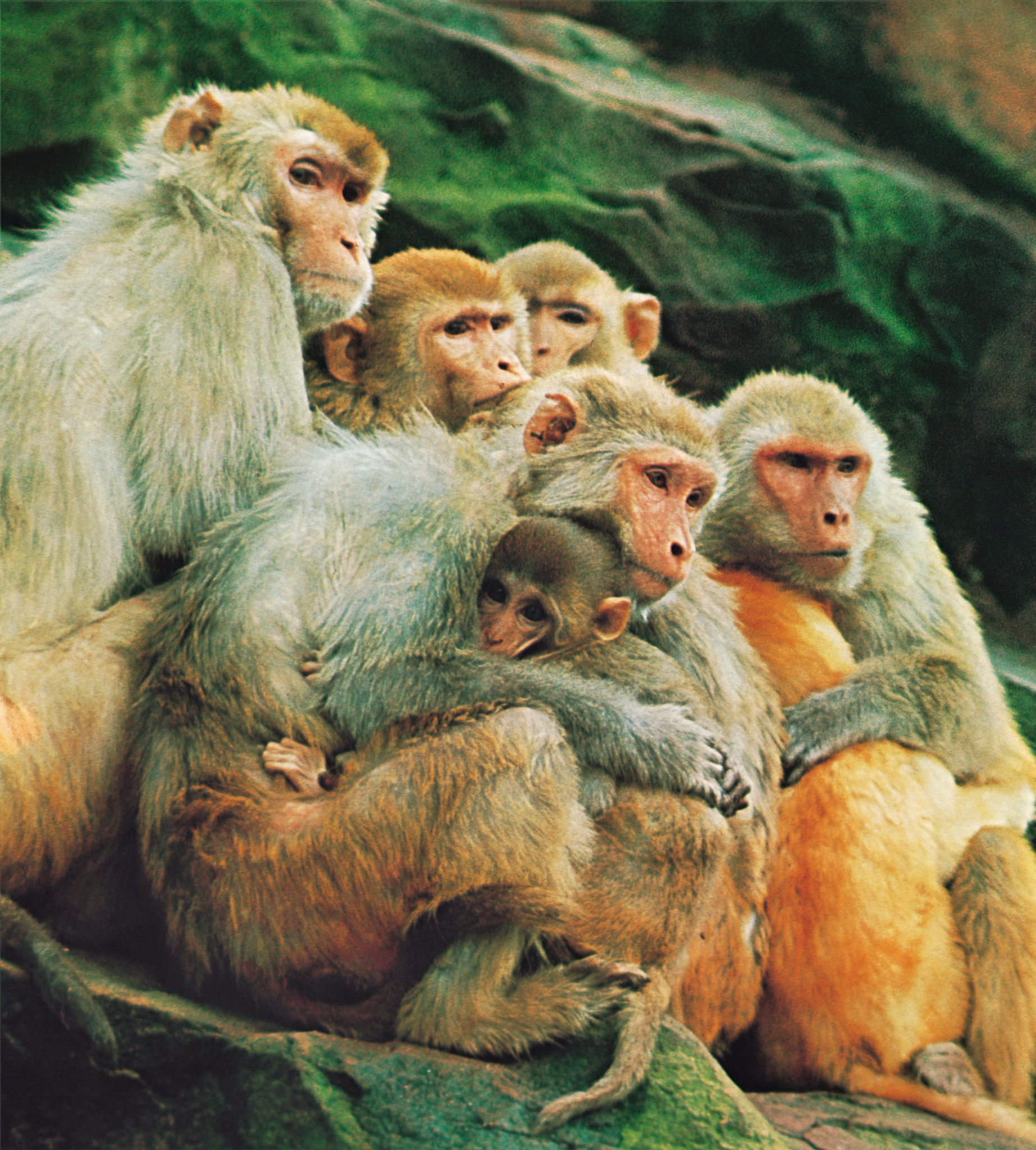 Wie die meisten Affen bilden die Rhesusaffen Verbände, in denen eine Rangordnung von sozial hoch und niedrig stehenden Tieren besteht.