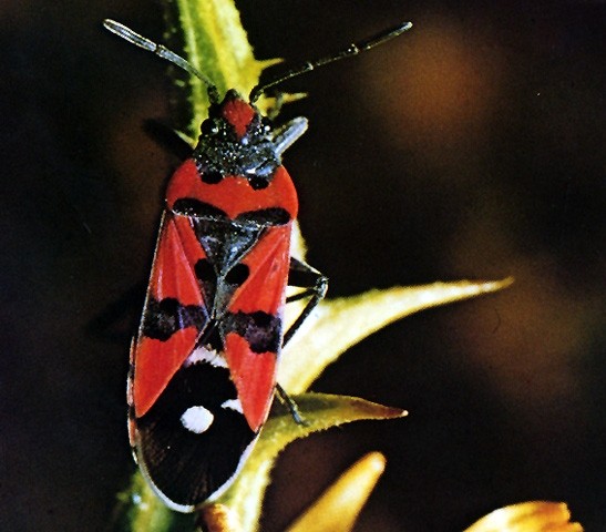 Zu den Langwanzen gehört die bunte Ritterwanze (Lygaeus equestris). Man findet sie meist an ihrer bevorzugten Nahrungspflanze, der Schwalbenwurz (Vincetoxicum). Im Herbst sonnt sie sich gerne an Gemäuer und Felsen.