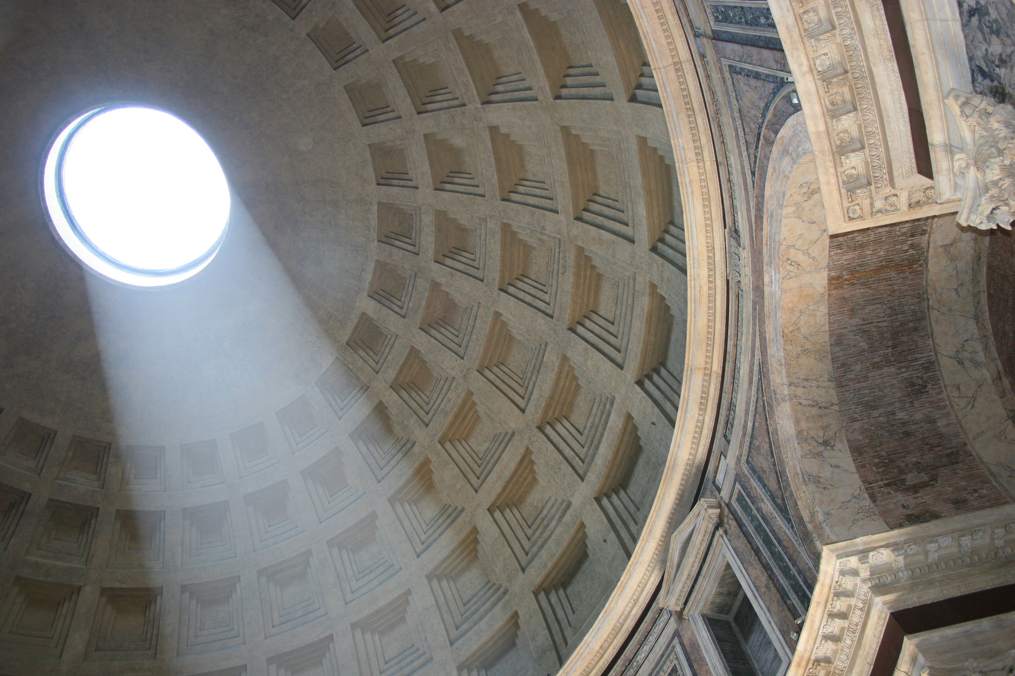 Vor allem die monumentale römische Architektur ist darauf angelegt, die Baukonzeption durch das Verhältnis zum umbauten Raum (Pantheon, Thermensäle) oder zur verkleideten Masse (Triumphbögen) zu definieren. Nachdem die Ziegel-Mörtel-Bauweise und das Gussmauerwerk die ältere Lehmziegel-Fachwerk- und Hausteinarchitektur im 2./1. Jahrhundert v. Chr. abgelöst hat, werden Bogen und Wölbung technisch leichter möglich und zu den wichtigsten Strukturelementen, während formal die griechische Säulen- und Gliederbauweise übernommen und, z. B. am Pantheon, den Räumen und Massen fassadenhaft vorgeblendet wird. Die hier entstehende Fassadenarchitektur erhält rasch Eigenwert und erlebt in der Gliederung der römischen Bühnenfronten, römischen Theater (Sabratha, Orange) und Platzanlagen (Nymphäum in Leptis Magna, Markttor von Milet) eine außerordentliche Blüte. Der eindrucksvolle römische Ingenieurbau zeigt mit Amphitheatern (Kolosseum in Rom), Aquädukten (Pont du Gard bei Nîmes, Aquädukt von Segovia), Brücken (bei Narni, Tajobrücke bei Alcántara) und Torbauten (Rom, Aosta, Rimini, Trier) die genannten Elemente unvermischt.