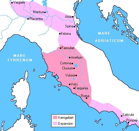 Bis in das 7. Jahrhundert v. Chr. war Rom, dessen Gründung von der sagendurchwobenen römischen Tradition auf Romulus im Jahr 753 v. Chr. zurückgeführt wird, eine von vielen Siedlungen in Latium, mit einem politischen Zentrum in der Forumssenke und geführt von Königen mit primär sakralen Aufgaben. Den ersten vier sagenhaften latinischen Königen (753-616: Romulus, Numa Pompilius, Tullus Hostilius, Ancus Marcius) folgten drei etruskische (616-510: Tarquinius Priscus, Servius Tullius, Tarquinius Superbus), deren Wirken eine gewisse Historizität zuzusprechen ist.