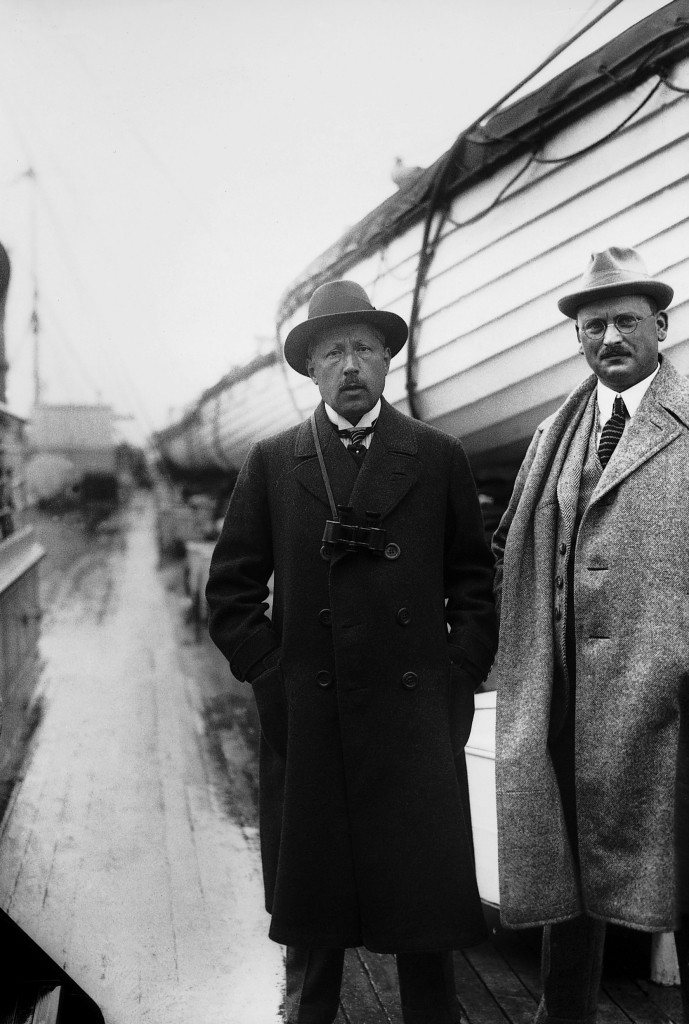 Edmund Rumpler (links), Konstrukteur und Generaldirektor der Rumpler Werke.