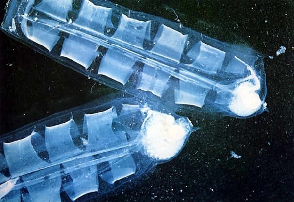 Salpen sind frei schwimmende Manteltiere, die gewöhnlich tönnchenförmig gebaut sind. Unter dem durchsichtigen Mantel sind immer große Muskelbänder ausgebildet, die das Tier ringförmig umgreifen.