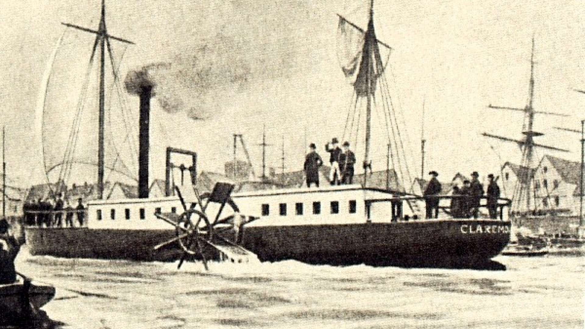 Das 1807 von Robert Fulton erbaute und ein Jahr später in Dienst gestellte Schaufelraddampfschiff »Claremont«