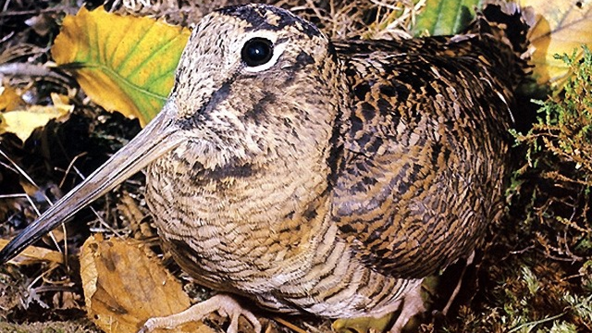 An den großen Augen erkennt man, dass die Waldschnepfe dämmerungsaktiv ist. Sie sind so weit nach hinten gerückt, dass sich die Gesichtsfelder beider Augen sogar hinter dem Kopf überschneiden.