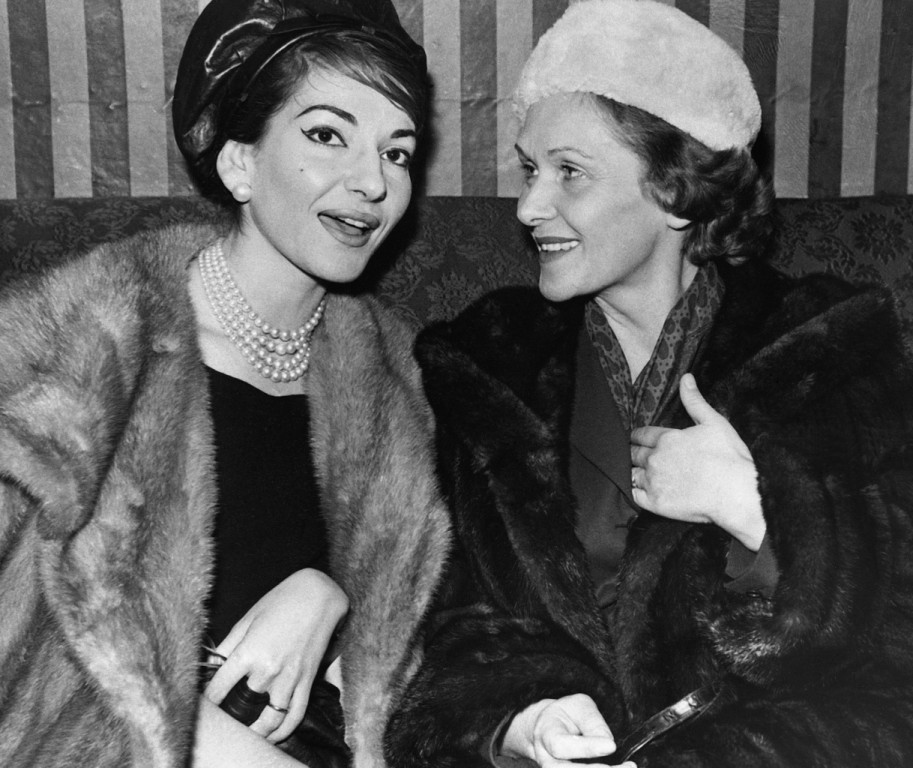 Maria Callas (links) im Gespräch mit der deutschen Opernsängerin Elisabeth Schwarzkopf.