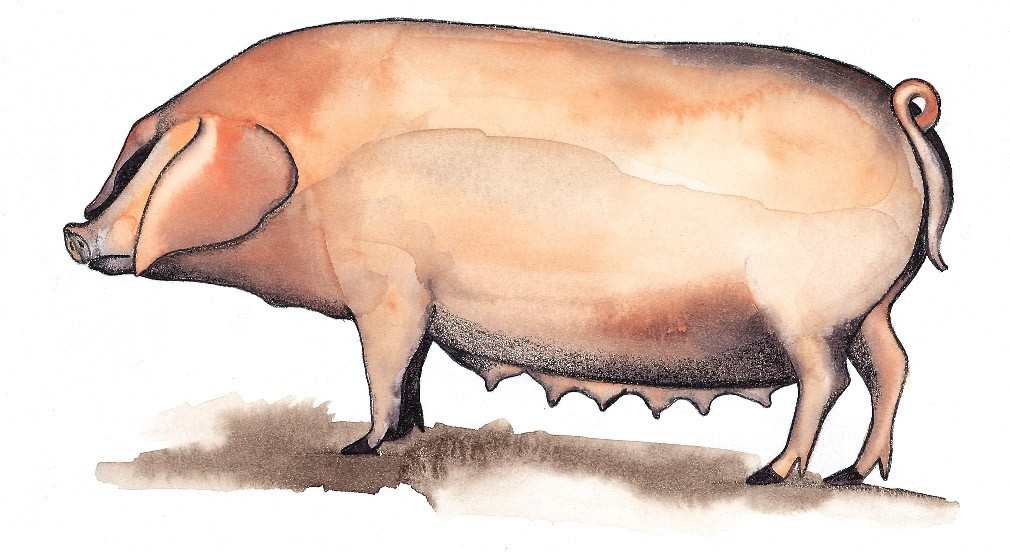 Unter den Hausschweinen gibt es einige, die speziell auf Fett- oder guten Fleischansatz gezüchtet wurden. »Fett-Schweine« sind gedrungen und feingliedrig gebaut. »Fleisch-Schweine« wurden wie diese holländische Rasse zu hochbeinigen Schweinen gezüchtet.