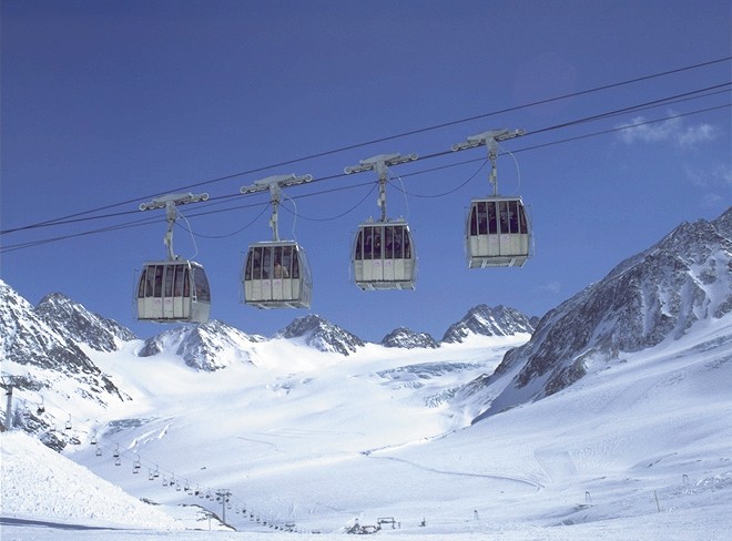 Die Kabinenbahn »Pitz-Panoramabahn« am Pitztal-Gletscher in Tirol, Österreich.