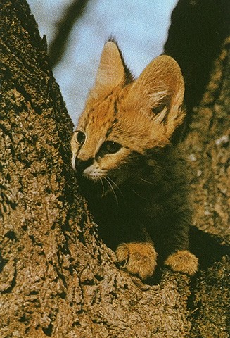 Junge Servale sind sehr neugierig und verspielt. Sie sind ziemlich leicht zu zähmen. Auffallend sind die großen Ohren, die auf einen gut entwickelten Gehörsinn hinweisen.