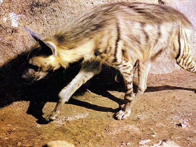 Eine der häufigsten Hyänenarten ist die Streifenhyäne. Das vorwiegend aasfressende, wenig aggressive Tier ist in Nordafrika und Asien beheimatet.