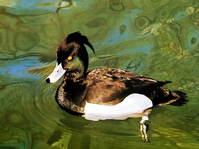 Die Reiherente ist ein geselliger Vogel, der sich oft inmitten zahmer Enten auf unseren Parkteichen aufhält.
