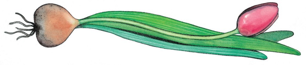 TulipaGattung der Liliengewächse der gemäßigten Zone der Alten Welt. Wild in Mitteleuropa nur im Süden die Wilde Tulpe, Tulipa silvestris, mit vor dem Aufblühen hängender, innen gelber, außen grüner Blüte. Aufrechte Blüten hat die in den verschiedensten Farben einfach oder gefüllt kultivierte Gartentulpe, Tulipa gesneriana.