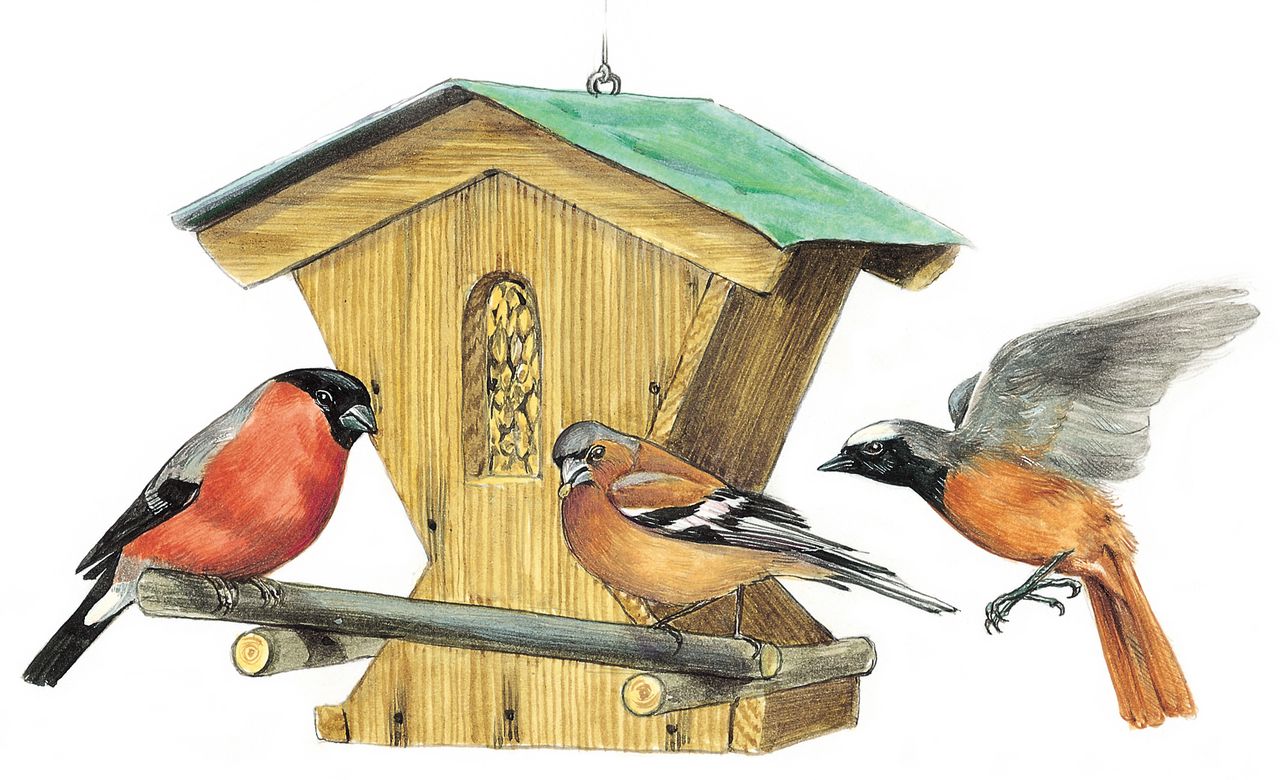 Dompfaff (li), Buchfink (mi) und Gartenrotschwanz (re)