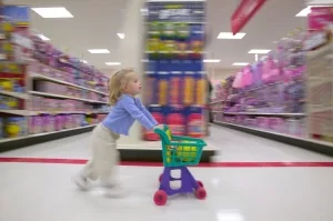 Spezielle Einkaufswagen für Kinder sollen diese dazu animieren, auch selbst zuzugreifen und ihre Eltern so zum Kauf zu bewegen.