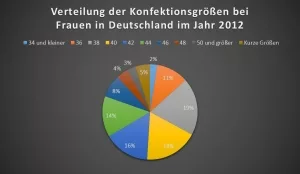 Bei der Betrachtung der Verteilung der Konfektionsgrößen deutscher Frauen wird jedoch schnell deutlich, dass Größen kleiner als 34 eher zu den Ausnahmen gehören. Aus der Verbraucheranalyse des Jahres 2012 geht hervor, dass ein Großteil der Frauen über die Konfektionsgrößen 38 und 40 verfügt. Zu bedenken ist allerdings, dass die Frauen in dieser Umfrage selbst diese Auskunft gegeben haben. Andere Untersuchungen ergeben, dass die Durchschnittsfrau in Deutschland Größe 42 trägt. Unabhängig davon, welche Zahlen letztlich stimmen, ist somit sicher, dass Kleidung der Größen kleiner als 34 nur von den wenigsten erwachsenen Frauen getragen werden können.