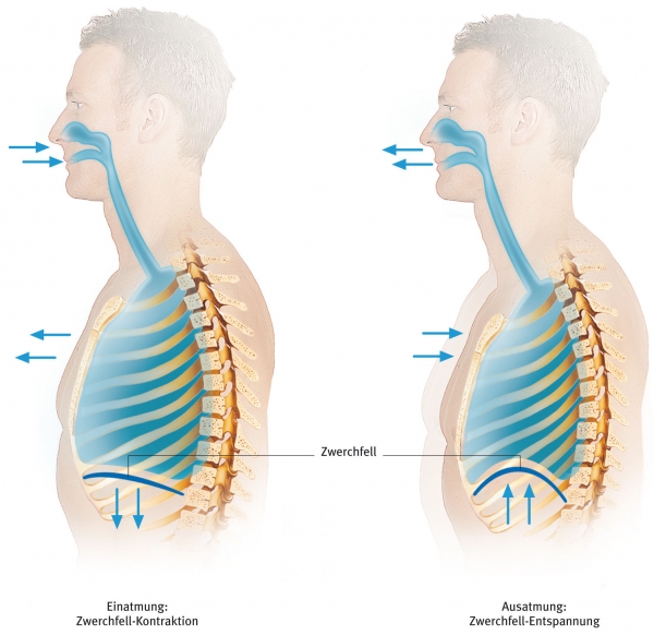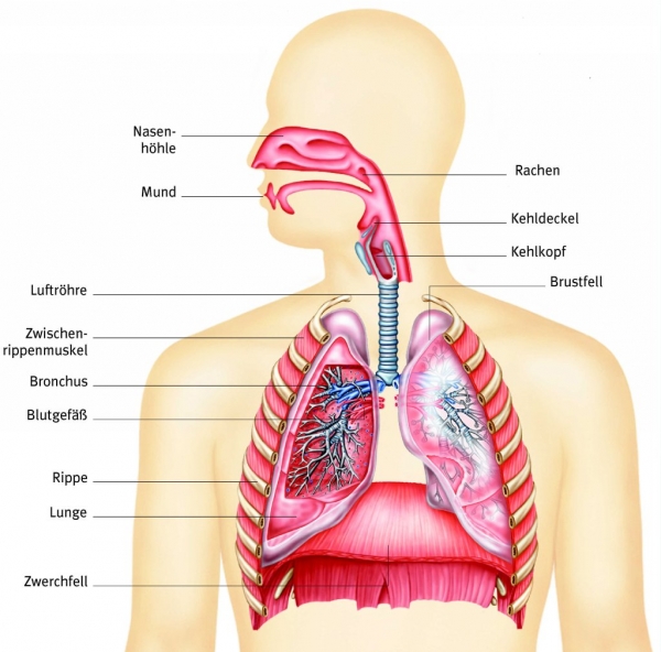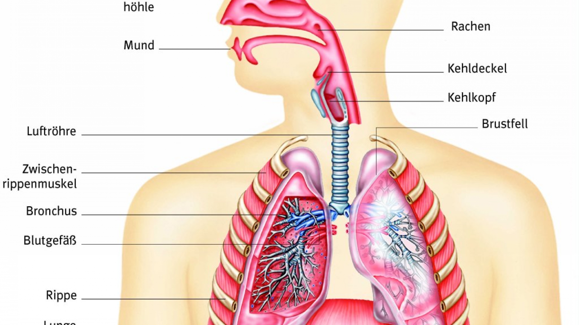 Zum Atemsystem gehören Nase, Mund, Luftröhre und Lunge. Nach dem Einatmen wird die Luft auf ihrem Weg zur Lunge befeuchtet, erwärmt und gereinigt. Danach erst geben die inneren Strukturen der Lunge Sauerstoff ans Blut ab und sammeln das giftige Kohlendioxid, damit es ausgeatmet werden kann.