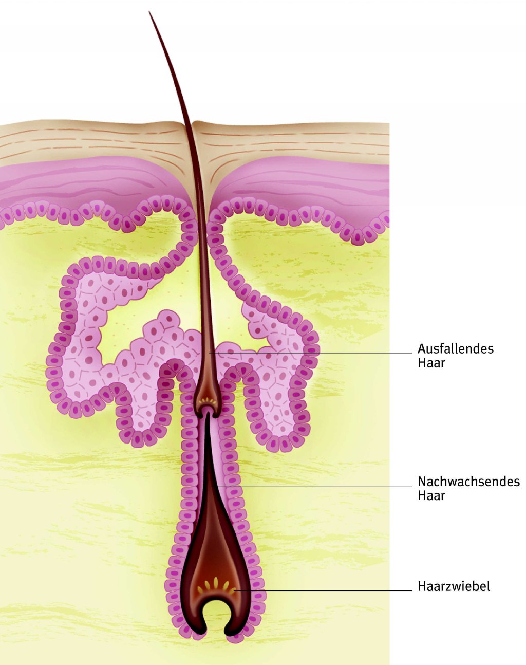 Kopfhaar wächst pro Monat etwa einen Zentimeter. Zu Beginn der Wachstumsphase stimuliert die Haarwurzel zunächst das Wachstum der Haarzwiebel, dann des Haarschafts. Im weiteren Verlauf des Wachstumszyklus zieht sich die Haarzwiebel langsam von der Haarwurzel zurück. Nach einer gewissen Zeit fällt das Haar aus.