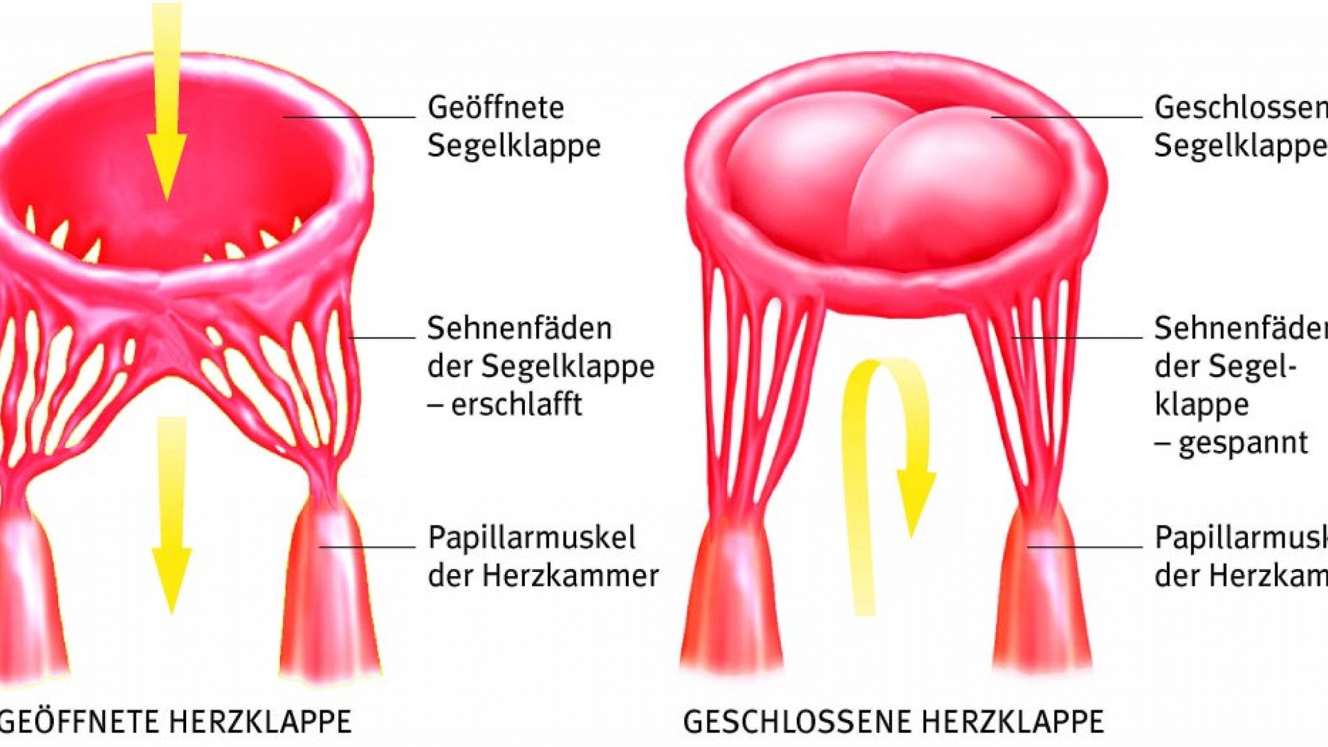Die Herzklappen haben eine wichtige Aufgabe im Blutkreislauf. Sie sorgen dafür, dass das Blut immer nur in einer Richtung durch das Herz gepumpt wird, indem sie ein Zurückfließen unmöglich machen. Zu Beginn der Kammerkontraktion verhindern die Sehnenfäden der Segelklappen ein Zurückschlagen der Segel unter dem Druck des Bluts in der Herzkammer.