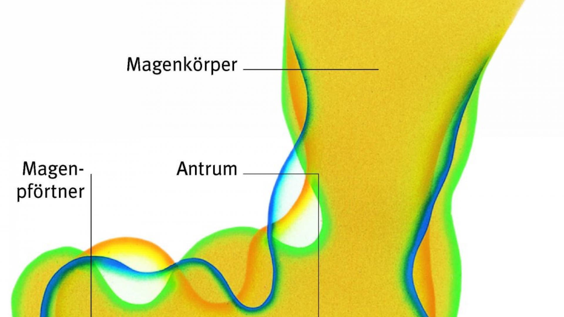 knetende und rollende Bewegungen der Magenmuskulatur. Sie dienen zum einen der ständigen Durchmischung des Nahrungsbreis, der mechanischen Zerkleinerung und der Optimierung der Fettverdauung. Zum anderen sorgt die Magenperistaltik für den Weitertransport des Speisebreis in Richtung Magenpförtner.