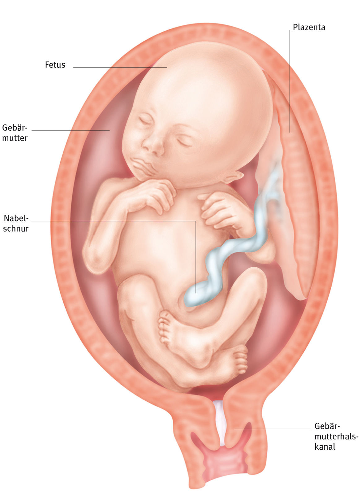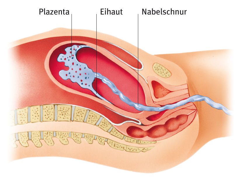 Placenta; Mutterkuchenscheibenförmiges, schwammiges Organ, das dem Stoffaustausch zwischen mütterlichem und kindlichem Organismus sowie der Produktion von schwangerschaftserhaltenden Plazentahormonen dient. Die Plazenta besteht aus einem mütterlichen Anteil, der von der Gebärmutterschleimhaut gebildet wird, und einem kindlichen Anteil, an dem die Nabelschnur ansetzt. Am Ende der Schwangerschaft wiegt die menschliche Plazenta etwa 500 Gramm, hat einen Durchmesser von 15 bis 20 Zentimetern und eine Dicke von zwei bis vier Zentimetern. Nach der Entbindung wird die Plazenta als Nachgeburt ausgestoßen.