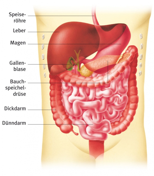 Bezeichnung für sämtliche an der Verdauung beteiligten Organe und Drüsen: Mund, Magen, Dünndarm, Dickdarm, Bauchspeicheldrüse, Leber und Gallenblase.