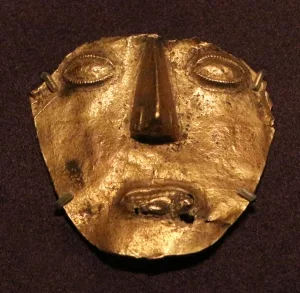 Eine Maske der Muisca, gefertigt aus der Goldlegierung Tumaga.