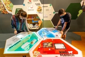Die Ausstellung zeigt, dass es Lösungen für die globalen Probleme gibt. Diese können dabei helfen, Rohstoffe und Produkte in Zukunft nachhaltiger zu erzeugen, zu verarbeiten und zu verbrauchen. Beispielsweise können sich Besucher eine neuartige Pflanzenzuchtanlage ansehen, die es ermöglicht, dass Pflanzen auch innerhalb von Gebäuden angebaut werden können. Spannend dabei ist, dass es sich um ein Förderbandsystem handelt, bei dem die Pflanzen ihren Standort wechseln, um bestmöglich zu wachsen.