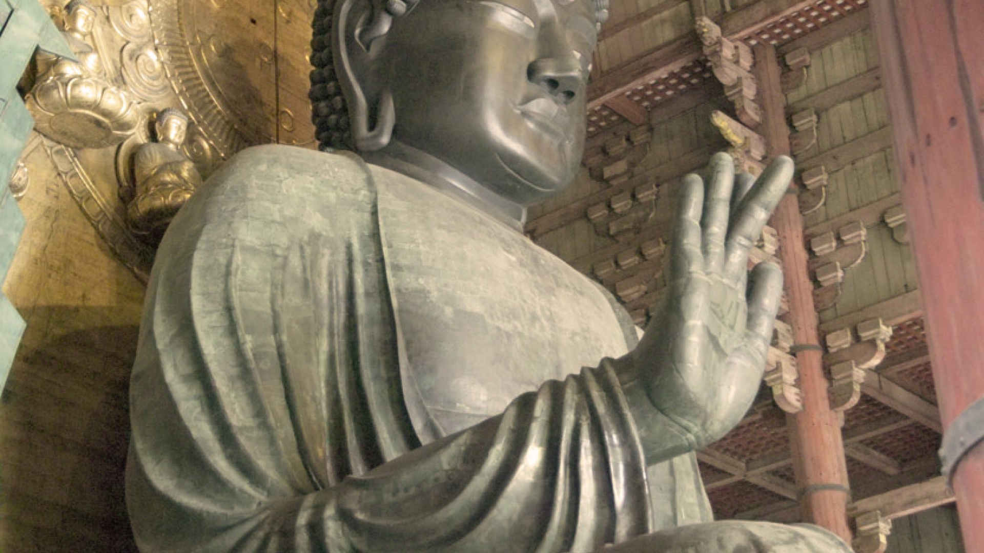 Ebenso bemerkenswert ist der Tōdai-ji (dt: "östlicher großer Tempel"). Der buddhistische Tempel beherbergt in seiner Haupthalle die größte buddhistische Bronzestatue (Daibutsu) überhaupt. Der Guss war technisch ungemein anspruchsvoll und gelang erst nach mehreren Fehlschlägen. 752 konnte die Figur in einem gewaltigen Festakt mit 10.000 Teilnehmern geweiht werden. Das Projekt ruinierte beinahe den japanischen Staat und verbrauchte einen Großteil der verfügbaren Kupferreserven des Landes. Die Haupthalle Daibutsuden, die den großen Buddha beherbergt, ist mit einer Breite von 57 m, einer Tiefe von 50,5 m und einer Höhe von 48,7 m das größte rein aus Holz gebaute Gebäude der Welt. Die heutige Halle, die Anfang des 18. Jh. fertiggestellt wurde, ist deutlich kleiner als die Vorgängerbauten, dafür aber etwas höher. Leider nicht erhalten sind die beiden etwa 100 m hohen Pagoden, die die Halle flankierten. Sie waren zur Zeit ihrer Erbauung wohl die nach den Pyramiden von Gizeh höchsten Bauwerke der Erde.