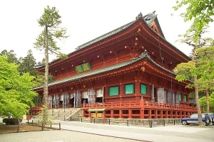 Ein Stück oberhalb der Brücke gelangt man zur Pilgerstraße Omotesando, die direkt auf den Tōshōgū-Schrein zuführt. Rechterhand liegt der Rinnoji-Tempel, das bedeutendste buddhistische Heiligtum der Region. In der Halle der drei Buddhas (Sambutsu-dō), dem größten Tempelgebäude Nikkōs, befinden sich drei 8 Meter hohe, vollständig mit Blattgold bedeckte Statuen.