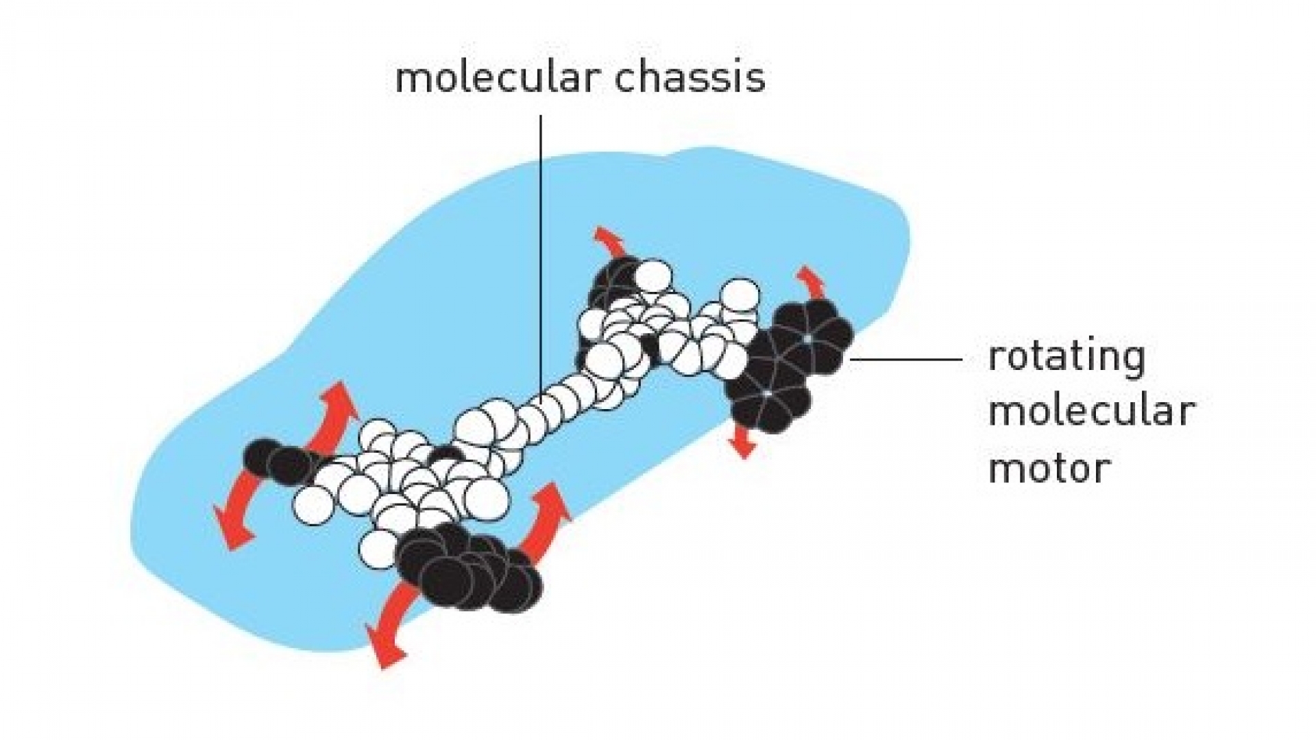 Nachdem diese beiden chemischen Nano-Bauteile erfunden waren, begann weltweit der Wettlauf um den ersten echten Nanomotor. Das Rennen machte 1999 der niederländische Chemiker Bernard Feringa. Ihm gelang es als ersten, ein Molekül zu konstruieren, dass bei Beleuchtung in eine Richtung rotiert – sozusagen ein chemischer Propeller. Wenig später kombinierten Feringa und seine Kollegen vier solcher Nanorotoren mit einer molekularen Karosserie und schufen so ein von Licht angetriebenes Nanoauto. Die Basis für das gesamte neue Forschungsfeld der molekularen Maschinen war damit gelegt.