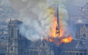 Am frühen Abend dann brach der in Flammen stehende Vierungsturm der Kathedrale zusammen und stürzte auf das brennende Dach. Rund 500 Feuerwehrleute waren im Einsatz, um ein Übergreifen der Flammen auf die beiden großen Türme der Kathedrale und ein Einstürzen der Mauern zu verhindern. Während der Nacht gelang es, das Feuer unter Kontrolle zu bringen und weitgehend zu löschen. Ob die wertvollen Glasfenster der Kirche und die große Orgel die Gluthitze und das Feuer überstanden haben, ist noch nicht bekannt.