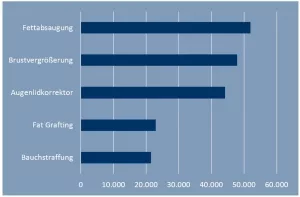 In Deutschland sind die operativen Eingriffe inzwischen sehr beliebt. Sicherlich sind die Korrekturen kein gesellschaftliches Statussymbol wie etwa in Brasilien. Nichtsdestotrotz steigt die Zahl, weswegen auch 2014 wieder über hunderttausend Eingriffe registriert wurden. Hier handelt es sich allerdings mitnichten nur um Brustoperationen, sondern auch um Hautstraffung, Nasenoperation oder Fettabsaugung. Diese Bereiche der Gesichts-Chirurgie sind besonders gefragt. So lag die Zahl derjenigen Patienten, die sich Fett haben absaugen lassen, im Jahre 2014 bei 51.978 Personen. Einer Brustvergrößerung haben sich hingegen 47.905 Personen unterzogen, während die Augenlidkorrektur von 44.194 Personen durchgeführt wurde.