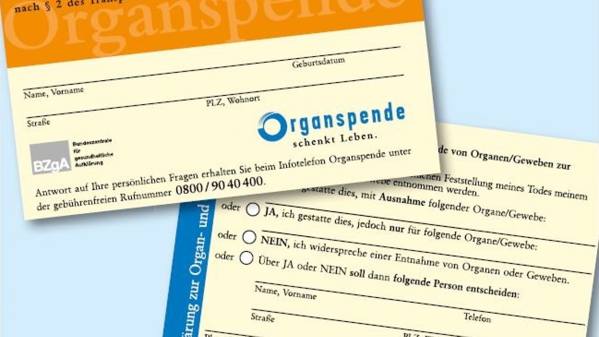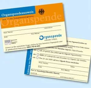 Der in Deutschland meistgenutzte Organspendeausweis wird von der BZgA herausgegeben und hat das Scheckkartenformat.