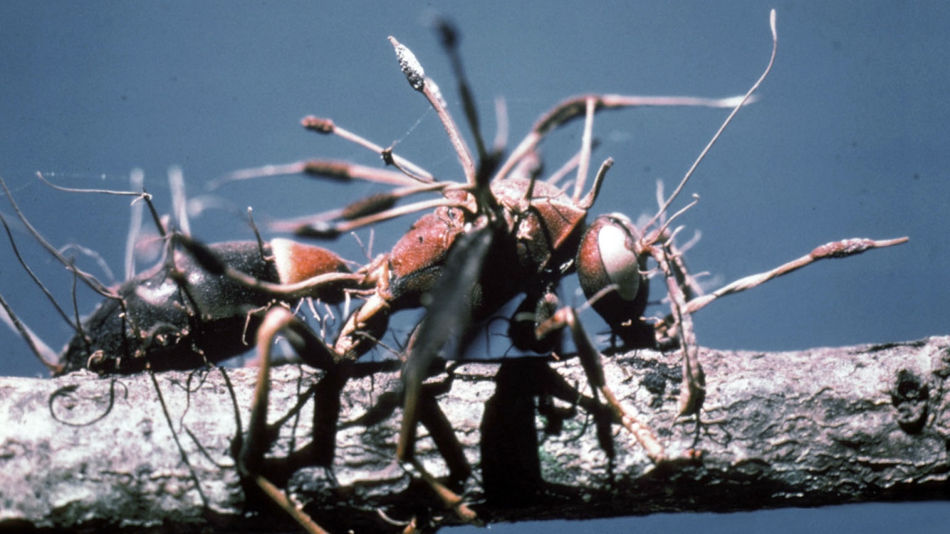 Doch könnte es eine solche Pilz-Pandemie tatsächlich geben? Und gibt es Pilze, die unser Gehirn befallen und unser Verhalten manipulieren? Klar ist: Den Pilz, der in der Serie die Pandemie auslöst, gibt es wirklich – allerdings nicht bei uns Menschen. Ophiocordyceps unilateralis befällt bestimmte Ameisenarten und verwandelt diese Insekten tatsächlich in Zombies: Die Pilzsporen bilden Ausläufer, die in das Gehirn der Tiere vordringen und ihr Verhalten verändern. Statt sich im Schutz der Streu zu bewegen, klettern die vom neuroparasitischen Pilz manipulierten Ameisen auf Gräser, Bäume und andere Pflanzen und beißen sich an deren Spitze fest.