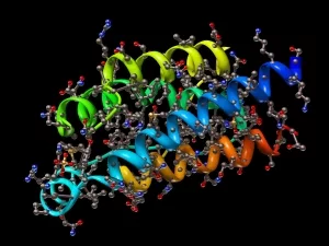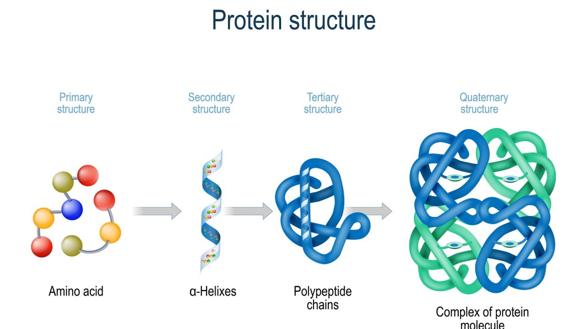 Ein normales Protein wird durch die Aneinanderreihung von etwa 100 bis 300 Aminosäuren gebildet. Dafür stehen zwanzig verschiedene Aminosäuren zur Verfügung, die jeweils anders aufgebaut sind und unterschiedliche spezifische Funktionen für das Protein erfüllen können. Zwar hat das Protein nun alle seine molekularen Komponenten erhalten, doch damit allein ist das Protein noch nicht einsatzfähig: Die Kette aus Aminosäuren muss sich zunächst so falten, dass das Protein eine bestimmte räumliche 3D-Struktur erhält. Ohne diese Struktur kann es bestimmte Funktionen nicht ausüben und es kann auch nicht von anderen Molekülen erkannt werden.