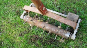 Besondere Wichtigkeit kommt auch der Durchlüftung, dem so genannten Vertikutieren, zu. Mit einem Rasenkamm oder einem Vertikutierer kann im Frühjahr die Rasenfläche von Moos und Filz gereinigt werden. Die scharfen, messerartigen Zinken ritzen den Boden auf, wodurch der Austrieb der Gräser angeregt wird. Für kleine Rasenflächen brauchen Sie jedoch nicht gleich ein teures Gerät anschaffen, denn eine Grabegabel erzielt hier die gleiche Wirkung.