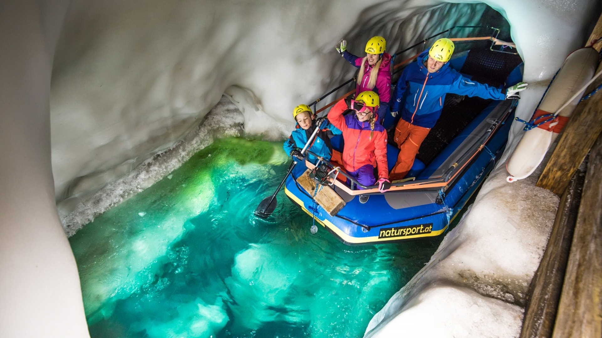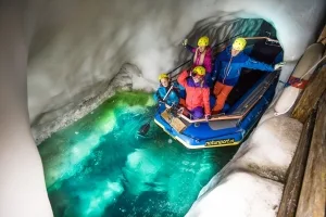 Seit 2008 ist diese "Natur Eis Palast" getaufte Höhlenwelt für Besucher zugänglich. Vom Eingang unweit der Bergstation der Liftanlage "Gletscherbus 3" kann man auf einem 640 Meter langen Weg die Wunder dieser eisigen Unterwelt erkunden. Den Gletschersee können ganz Mutige sogar mit dem Kanu oder einem Stand-Up-Paddelboard befahren.
