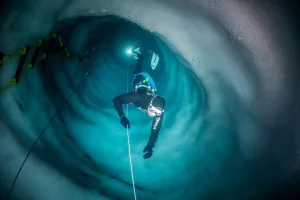 Tauchgang im Eisschacht
