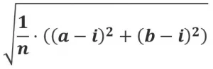 Für einen verlässlichen Wert werden natürlich für gewöhnlich mehr diskrete Werte, also ein größerer Anlagezeitraum, zur Berechnung einbezogen. Üblich sind eins, drei oder fünf Jahre. Zur Vereinfachung wurde die Formel nur mit zwei Werten (a und b) abgebildet. Bei längeren Laufzeiten wird die Formen um (c - i)² und so weiter erweitert.