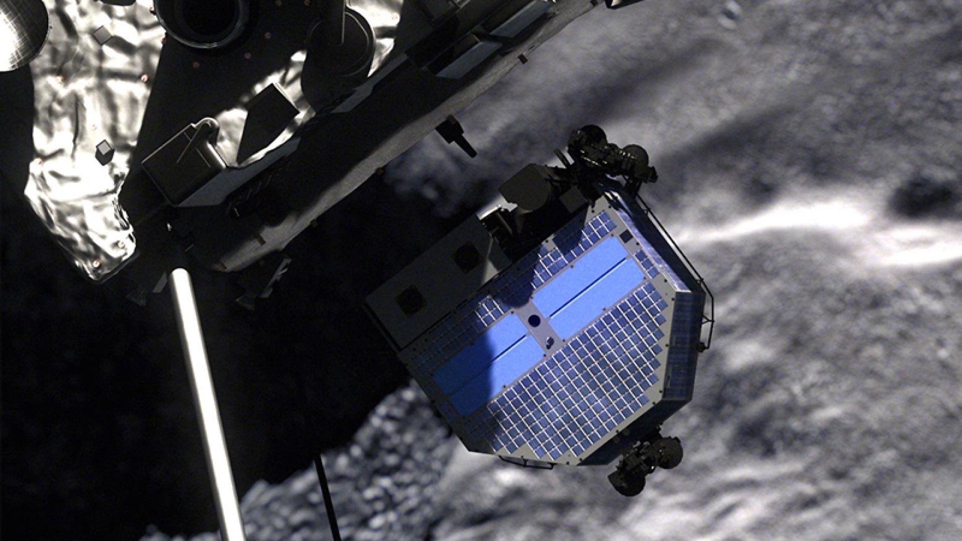 Die Landeeinheit Philae reiste zusammengeklappt per Huckepack mit der Raumsonde Rosetta zu seinem Ziel.