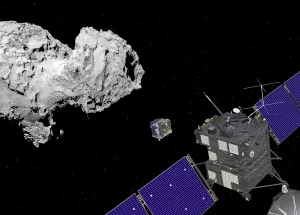 Im August 2014 schwenkte Rosetta endlich in eine Umlaufbahn um ihren Ziel-Kometen ein – das erste Mal, dass ein Raumfahrzeug überhaupt ein solches Manöver durchführte. Von ihrer Umlaufbahn um Churyumov-Gerasimenko aus untersucht Rosetta nun vor allem die sogenannte Koma des Kometen: verdampfendes Gas und mitgerissene Staubpartikel, die sich vom Kometenkern lösen. Diese Bestandteile bilden die charakteristisch leuchtende Hülle und auch den Schweif, und sie verraten viel darüber, wie der Komet zusammengesetzt ist.