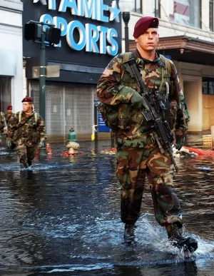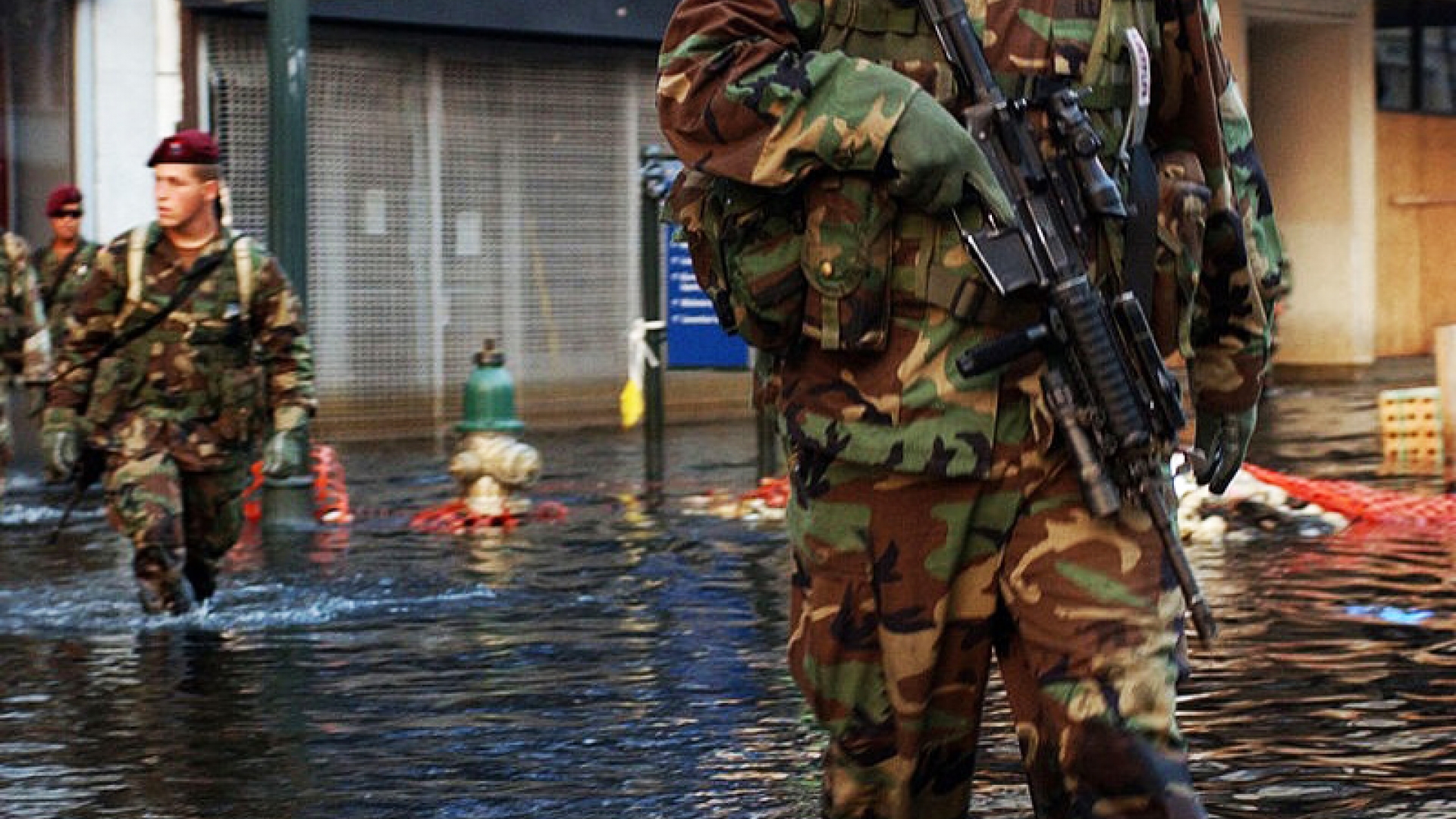Tatsächlich herrscht in den Tagen und Wochen nach „Katrina“ in den betroffenen Gebieten der Ausnahmezustand: Unzählige Menschen haben kein Dach mehr über dem Kopf, es fehlt an sauberem Trinkwasser, gibt keinen Strom. In ihrer Not sehen sich viele Menschen gezwungen, in Geschäften nach Lebensmitteln und Wasser zu suchen. Die Situation wird aber auch ausgenutzt, um Schmuck- und Bekleidungsläden zu plündern. Es kommt zu Morden und Vergewaltigungen, Polizisten werden beschossen. Die Regierung greift deshalb zu einer drastischen Maßnahme: Am 1. September wird in New Orleans das Kriegsrecht verhängt. Die Gouverneurin von Louisiana fordert die Nationalgrade auf, Plünderer zu erschießen.